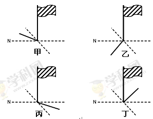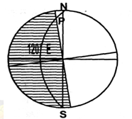 4、单选题 图甲为地球某日昼夜情况示意图,N为北极,S为南极,P为120°E经线和晨线的交点。图乙表示旗杆的日影(图中短粗线)朝向,读图完成下列问题。