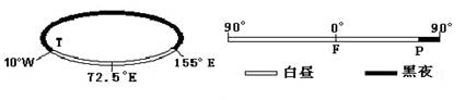 4、单选题 2012年4月13日朝鲜于西海卫星发射场发射一枚火箭,但未能进入预定轨道, 5、单选题 下图为某日某时刻30°N纬线圈和72.5°E经线的昼夜分布状况,据图中信息回答问题。 |