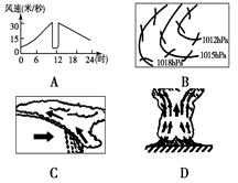 本题解析:本题考查天气系统和地理信息技术的应用。小题1:造成我国北方冬季的暴风雪是受冷锋影响的天气,故C图符合。
