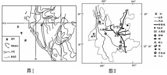图Ⅱ 为我国云南省河流、矿产、铁路分布图