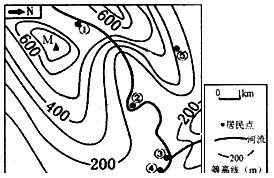 1、既近水又受水患影响最小的居民点是 [???? ] A.① B.② C.③ D.④ 2、下列叙述正确的是 [???? ] A.②居民点最容易发展成为城镇 B.站在M山顶可以通视图中的所有居民点 C.图中干流的流向为西北流向东南 D.由⑤居民点取近道攀登M山忽上忽下较耗体力 3、⑤居民点到M山顶的相对高度可能为 [???? ] A.368m B.488m C.678m D.708m 参考答案:1、A 本题解析: 本题难度:一般 5、单选题 图为某区域等高线分布状况,等高距为200米。完成27~28题。 |