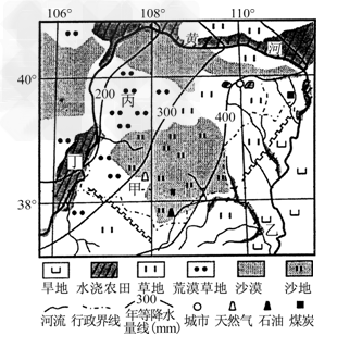 5、综合题 图为我国某区域示意图,完成下列问题。(1) 图中甲地是我国“西气东输”重要的气源地,简述“西气东输”对当地环境可能产生的影响。__________________________________________________。