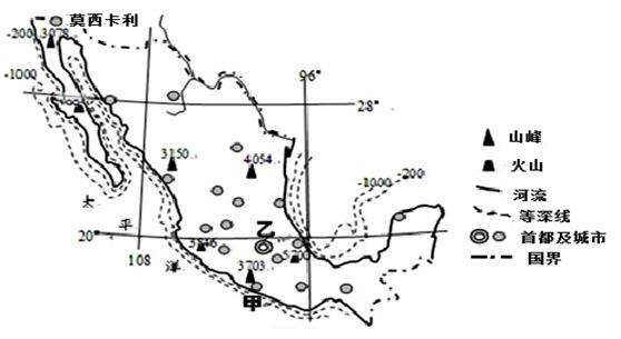 材料二:墨西哥甲、乙两城市多年平均气候统计资料