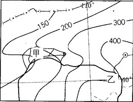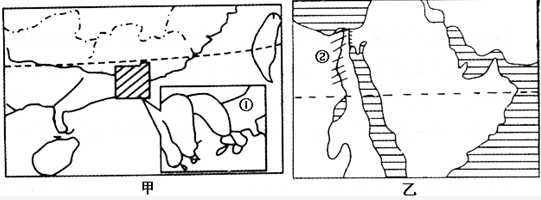 (1)甲位于回归线附近的大陆东岸,受季风环流影响而形成季风气候;乙位于回归线附近的大陆中部和西岸,终年在副热带高压或信风带控制下形成热带沙漠气候。