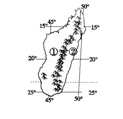 1、单选题  马达加斯加地广人稀,水稻种植有着得天独厚的优越性,全国各地都有栽培,但仍不能完全自给。读图,回答1—2题。