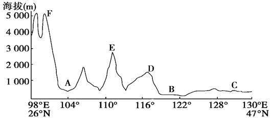 3、综合题 图为“我国沿某线的地形剖面图”,读图回答问题(10分)