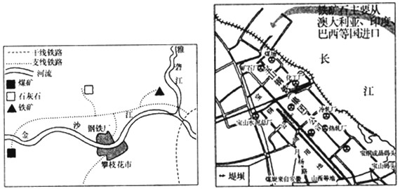 (1)结合所学地理知识比较并说出,攀钢比宝钢发展钢铁企业的主要优势。