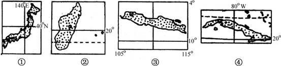 ①甲国从丁国进口铁矿石 ??②丁国从甲国进口煤炭 ③乙大量出口小汽车到丙国??④丙国大量从乙国进口粮食 A.①② B.①③ C.①④ D.③④ 5、单选题 读下面四幅岛屿图,回答5~6题。 |