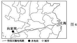 2、单选题 2010年7月8日,向家坝——上海特高压直流输电示范工程投入运行。该工程线路全长1907公里,途经四川、重庆、湖南、湖北、安徽、浙江、江苏、上海八省市。据了解,该工程投运后,每年可向上海输送320亿千瓦时的清洁电能,可节省原煤1500万吨,减排二氧化碳超过3000万吨。结合“向家坝——上海特高压直流输电工程线路图”(图4),回答问题。