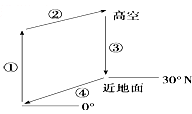 【小题2】赤道地区终年炎热,盛行上升气流,形成高温多雨的热带雨林气候。①为赤道地区的上升气流。