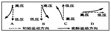 4、单选题 下图中正确表示北半球近地面水平运动物体偏向的是
