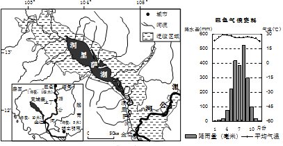 A.5~9月向南流,面积小 B.5~9月向北流,面积大 C.10~次年4月向南流,面积大 D.10~次年4月向北流,面积小 |