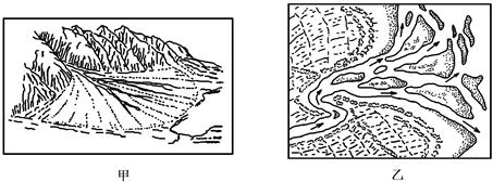 A.流水侵蚀 B.流水沉积 C.风力侵蚀 D.风力沉积 |