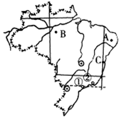 点评:本题结合图示考查南美洲的板块边界、气候及自然带,试题难度中等,解题关键是识记板块的位置,掌握气候的分布、特点及成因、所形成的自然带。