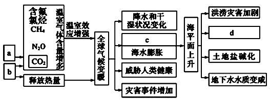 (1)根据全球气候变暖成因与危害之间的关系,填出下列表格中各字母所表示的内容。