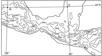 3、单选题 下图为世界某区域等高线分布图,读图回答下列小题。