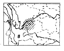 1.与图中斜线所示区域的主要地质灾害的形成无关的因素是2.B处7月份盛行