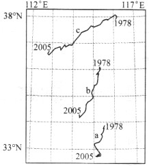 2、单选题 在地理研究中,可用重心移动反映地理事物和现象空间分布的变化,下图表示我国1978~2005年能源生产总量、能源消费总量与GDP重心变化轨迹。完成1~2题。