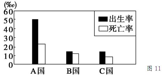 (1)A国人口自然增长率约为??‰,在A、B、C三国中,人口自然增长率最高的是??国,与我国人口自然增长率(2004年约6‰)相似的是????????????国。