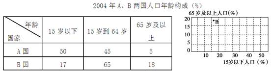 (3)根据表格提供的数据,在下图中标出A点,以表示A国15岁以下、65岁及以上人口年龄构成。