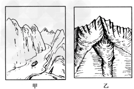 3、单选题 下图中甲、乙两图中地貌形成的共同原因是