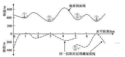 (1)根据水循环发生的领域,图中所示水循环为 循环,在该水循环参与下,①处的 岩可转化为②处的 岩。(3分)