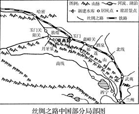 材料一:如今丝路游又在吸引着来自世界各地的旅游者。丝路重镇敦煌附近有莫高窟、玉门关、鸣沙山、月牙泉等著名景观,但敦煌没有游人如织的景象,而略显简陋和寂寞。莫高窟是敦煌艺术的精华,它有大小洞窟几百个,是集建筑、雕塑、壁画三位一体的艺术宝库。为了更好地保护这座世界文化遗产,每年轮换开放十个洞窟。