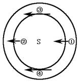 4、单选题 读下图,四个平行箭头中指向东方的是 ( )