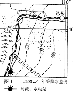 (1)指出图1所示区域的年降水量分布特征。