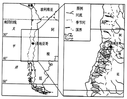材料二?智利地理位置及葡萄主要产区分布示意图。