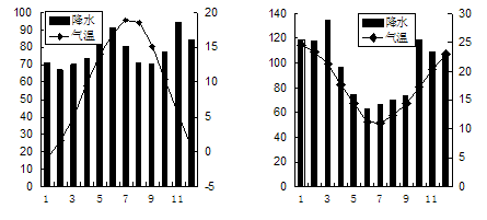 材料一 北京时间6月16日06:00(巴西当地时间15日19:00),2014世界杯F组首轮一场比赛在马拉卡纳球场展开角逐,阿根廷2比1力克波黑。阿根廷首都布宜洛斯艾利斯根廷(34.6°N,58.5°E 海拔25m)和波黑首都萨拉热窝(43.9°N,18.4°E 海拔630m)气候资料图(图)。