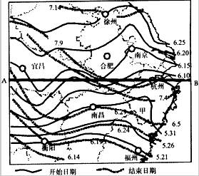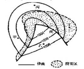A.①③ B.②③ C.①④ D.②④ 参考答案:小题1:B 本题解析:小题1:根据图中锋面和气旋结合在一起称为锋面气旋。根据雨区位于锋面北侧,判断该地位于北半球,所以甲地风向为偏北风,乙地气温较高,丙地等压线稀疏,气温较低。所以本题选择B选项。 本题难度:一般 2、综合题 下图所示为“中国东部地区梅雨期起讫日期等日期线图”,读图回答问题。 参考答案:(1)D;集中分布在江淮流域,自南向北递减 本题解析: 本题难度:一般 3、单选题 下图示意某日6时、18时近地面气压分布(单位:百帕)。读图,从6时到18时,图中: |