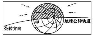 【小题2】地球的自转方向与公转方向是一致的,都是自西向东;图示是逆时针,应是北半球;此时昼夜平分,应是3月21日或9月23日前后;甲处在晨线上,是6:00。选A正确。