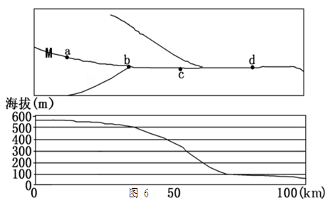 a.水土流失 b.土地沙漠化 c.土壤盐碱化 d.酸雨危害 A.ab B.ac C.cd D.bc 5、单选题 读图6“M河流域水系分布图及其对应的干流河床剖面图(如b的海拔为500米)”, 完成题。 |