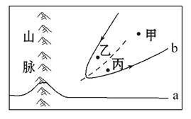 2、单选题 下图中a为地球自转线速度等速线,b表示该地某时刻的稳定风向轨迹。读图完成下列问题。