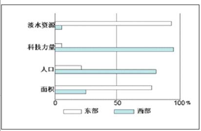 2、单选题 下图表示某国两大经济地带的基本资源指标(﹪),该国最有可能是
