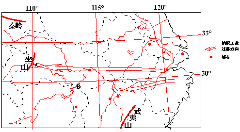 (1)描述图中城市分布的规律及原因。(3分) (2)写出图示地区中国的世界遗产。 (4分) (3)长江沿江地带有两大工业走廊,分别是汽车工业走廊和钢铁工业走廊。试分析长江流域发展汽车工业的有利条件。(3分)