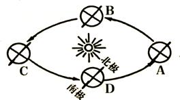 小题3:此日,地球在公转轨道上最靠近下图中哪点的位置
