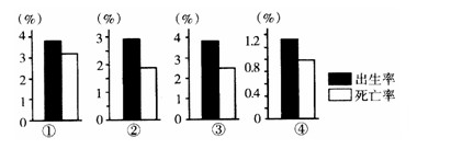 A.原始型模式 B.传统型模式 C.现代型模式 D.过渡模式 参考答案:小题1:C 本题解析:试题分析:小题1:人口自然增长率=出生率-死亡率,读图,①的出生率为1.5%,死亡率为1%,自然增长率为0.5%;②的出生率为2%,死亡率为1.5%,自然增长率为0.5%;③的出生率为3%,死亡率为1.5%,自然增长率为1.5%;④的出生率为4%,死亡率为3.5%,自然增长率为0.5%。人口自然增长速度最快的国家是③。正确答案选C。 本题难度:简单 5、单选题 就全球而言,影响人口数量变化的主要原因是???????????????????????? 参考答案:D 本题解析:试题分析: 本题难度:简单 |