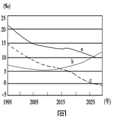 本题解析:试题分析:小题1:根据人口出生率-死亡率=自然增长;我国的人口出生率不断下降,人口自然增长率不断下降,而2010年之后,我国的人口死亡率有所上升,故判断a表示人口出生率;b表示人口死亡率;c表示人口自然增长率。