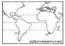 2、单选题 下图为世界某种气候类型的局部分布图。完成下列问题。关于该气候的说法正确的是(?)