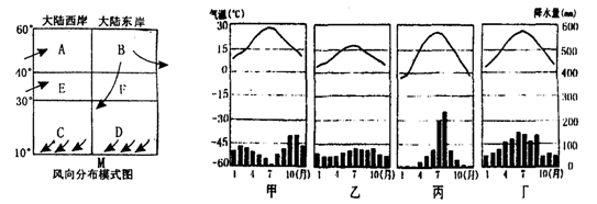 参考答案:(1)北;冬 本题解析:(1)根据图中的纬度分布,判断为北半球,根据30°-40°之间受西风控制,气压带向南移,为北半球的冬季。 本题难度:一般 2、单选题 该图为某假想陆地的一部分,读图回答问题。 参考答案:A 本题解析:本题考查气候类型的分布。由于F为小岛,故海洋性较强,图示大陆东岸35°N为亚热带季风气候与温带季风气候的分界线,即1月0°等温线经过,但岛上温度较同纬度陆地高;且降水量较同纬度陆地多。 本题难度:困难 3、单选题 若该图为热力环流侧视图,甲乙为相距不远的陆地,②③为垂直气流,①④为水平气流,则甲乙丙丁四处气压的关系为 ( ) |