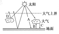 【小题2】 图中箭头A、B、C、D,表示大气对地面的保温作用的是( )