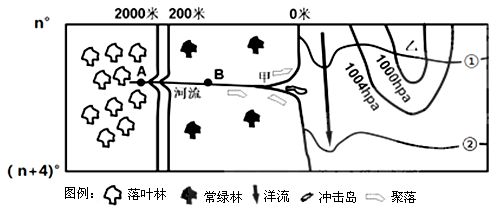 5、单选题 图中n和n+4为两个不同纬度,读图完成下列下列各题。