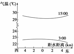3、单选题 我国南方某地新建一小水库,某日两时刻测得水库及东西两侧气温分布如图所示,据此回答下列问题。