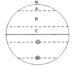 (2)写出图中数码所代表的纬线名称和纬度: