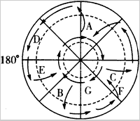 2、综合题  下图是以极点为中心的半球图,箭头表示洋流的分布位置及流向。读图回答下列问题。
