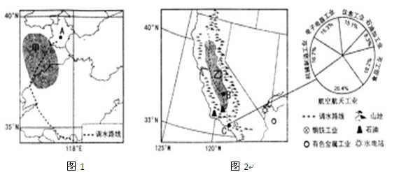 A.人口迁移的现象 B.影响农业区位发生变化的因素是单一的 C.影响农业生产的区位条件是在变化的 D.自然条件的改变是导致农业区位因素变化的主要因素 2、综合题  图1和图2是某两国跨流域调水工程局部示意图,图2中饼图是C城市的工业结构图,A、B是两个水资源调入区代表性城市。读图表,回答下列问题。 3、单选题  ??? 下表为四种农作物产销资料,假如该地区是一个地势平坦的平原,可种植花卉、蔬菜、稻米和甘蔗等四种农作物,其产品全部提供某一市场消费,且地价相 同,回答1—2题。  4、单选题  我国糖料作物的“南蔗北菜”的分布,体现了农业生产的(??) 5、单选题  下图是甲、乙两幅区域图,回答下列小题。 |