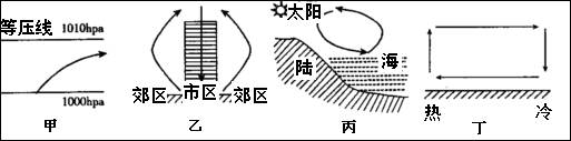 A.城郊热力环流中,近地面大气由郊区流向城市