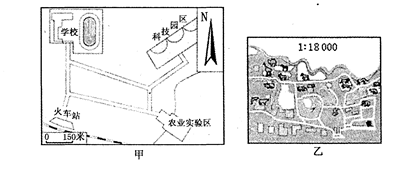 A.比例尺甲大于乙? B.甲为地图,乙为景观图